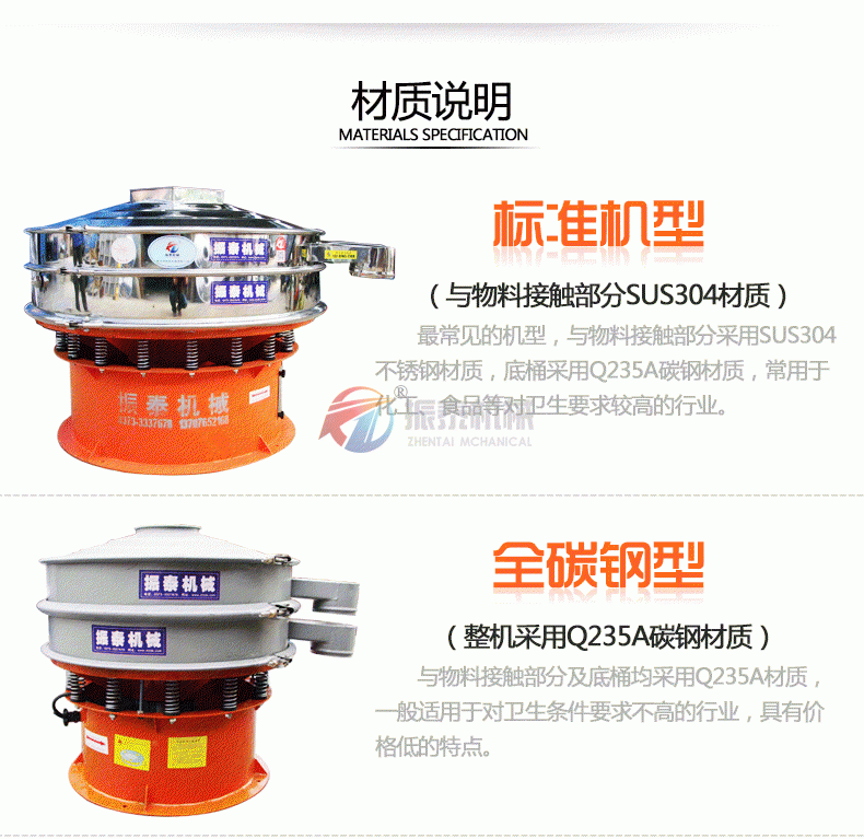 石膏粉除雜、過(guò)濾專(zhuān)用旋振篩材質(zhì):