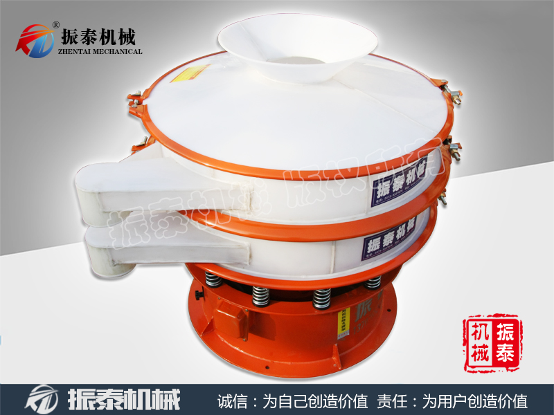 PP聚丙烯旋振篩是指用PP材質(zhì)(聚丙烯)材質(zhì)制作而成的旋振篩。PP聚丙烯旋振篩是專門針對(duì)不能與金屬接觸的物料篩選而設(shè)計(jì)的一款旋振篩。振泰機(jī)械生產(chǎn)的PP聚丙烯旋振篩,與物料接觸部分不含任何金屬成分。篩選效果好,粉末不飛揚(yáng),液體不外漏??砂惭b1-5層篩網(wǎng),將物料篩分幾個(gè)不同的規(guī)格。并且可按客戶需求特殊定制。