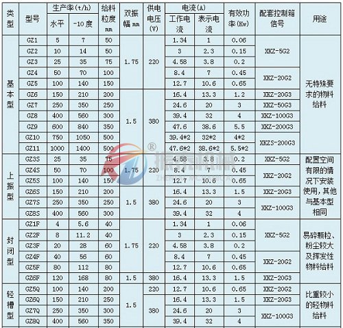 GZ電機(jī)振動(dòng)給料機(jī)技術(shù)參數(shù):