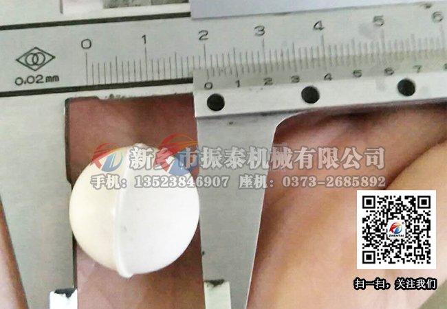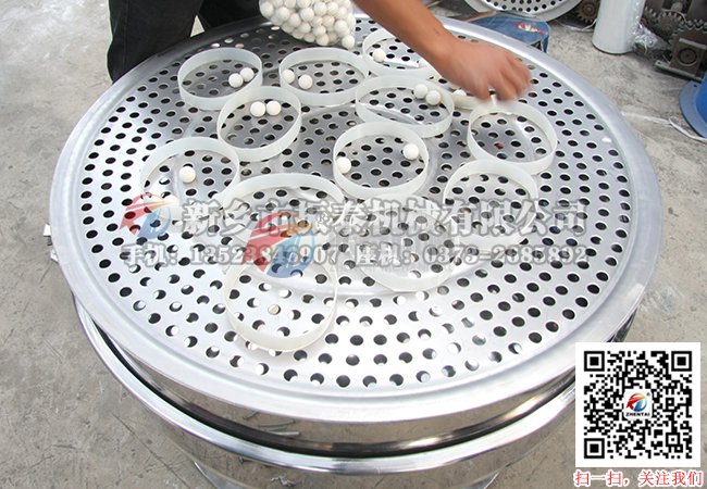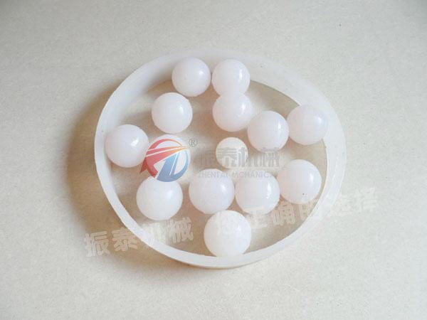 彈跳球是旋振篩常用的清網(wǎng)裝置,安裝在旋振篩的沖孔板和網(wǎng)架之間,在旋振篩篩選過濾物料時(shí)起到防止堵網(wǎng)、提高篩分效率的作用。有橡膠、硅膠、聚氨酯等材質(zhì)。不同型號(hào)的旋振篩使用的彈跳球的規(guī)格大小也不同,常用的有直徑20mm、25mm、28mm、30mm、35mm、40mm、50mm等。