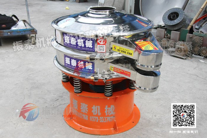 硅藻土振動(dòng)篩利用YZUL立式振動(dòng)電機(jī)作為激振源,通過振動(dòng)電機(jī)上下兩端的偏心重錘將旋轉(zhuǎn)運(yùn)動(dòng)轉(zhuǎn)變?yōu)樗健⒋怪?、傾斜的三次元運(yùn)動(dòng),并傳遞到旋振篩的篩面上;物料通過入料口進(jìn)入設(shè)備內(nèi),根據(jù)不同物料篩分要求,物料經(jīng)過1-5層采用不同目數(shù)的金屬編織篩網(wǎng)的篩分層,在這個(gè)過程中,位于各層的篩網(wǎng)下的清網(wǎng)裝置(彈跳球)通過頻率振動(dòng)不斷撞擊篩網(wǎng),使篩網(wǎng)上層物料能夠順暢的透網(wǎng)篩分,并有效解決了物料堵網(wǎng)問題出現(xiàn),不同目數(shù)的物料通過各層對(duì)應(yīng)目數(shù)的篩網(wǎng)后在各層的出料口排出,最終實(shí)現(xiàn)篩選除雜或過濾分級(jí)的目的。調(diào)節(jié)上、下兩端的相位角,可以改變物料在篩面上的運(yùn)動(dòng)軌跡。