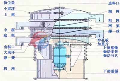 味精旋振篩工作結(jié)構(gòu)原理及物料軌跡圖: