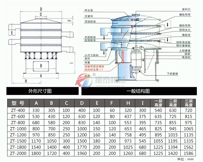 顏料粉振動篩外形結(jié)構(gòu)及尺寸: